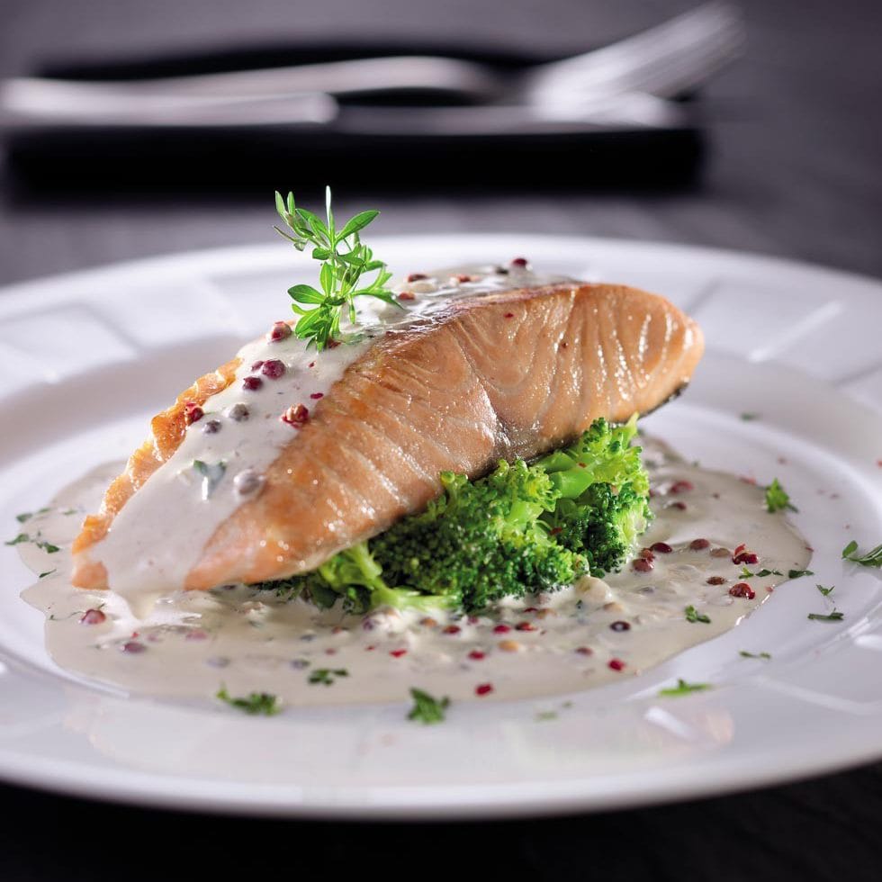 Филе лосося с соусом «Розовый перец» — это блюдо, которое не оставит равнодушным любителей рыбы. Филе лосося готовится на гриле или в духовке, после чего его подают с соусом из розового перца. Этот соус придает блюду пикантность и оригинальный вкус. Розовый перец обладает легким острым вкусом и является отличным источником витамина С. Филе лосося с соусом «Розовый перец» можно подавать как на обычный ужин, так и на праздничный стол. Это блюдо прекрасно сочетается с овощными гарнирами и зеленью.