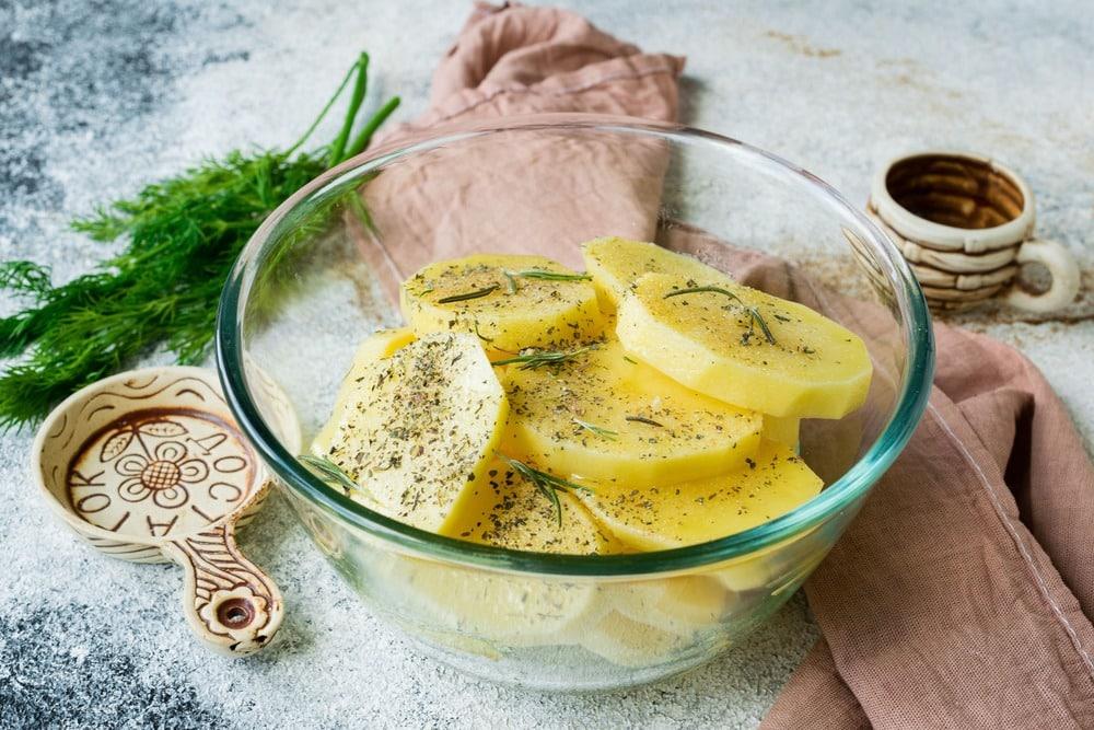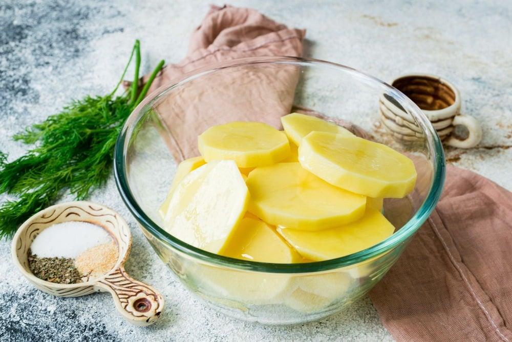 Кстати, очень удобно перемешивать порезанный картофель со специями и маслом в пакете. Достаточно соединить в нем все ингредиенты, завязать пакет и энергично его потрясти, чтобы овощи соединились с маслом и специями. И лишнюю посуду мыть не нужно!