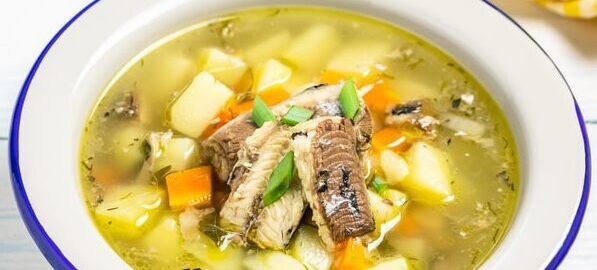 Ингредиенты 1 банка Рыба в собственном соку консервированная 3 картофеля Картофель 1 шт. Морковь 1 головка Лук репчатый 1 шт. Лавровый лист по вкусу Соль