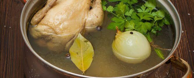Ингредиенты 1-1,5 кг цыпленок 2 средние штуки морковка 6 литров вода 100 грамм листья сельдерея 1 штука луковица 5-10 горошин перец 50 грамм зелень 2 листа лаврушка по.