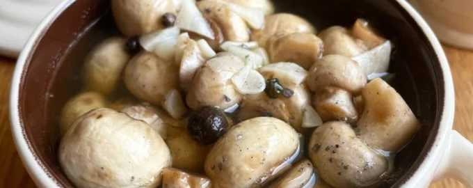 Ингредиенты Шампиньоны маленькие — 500 гр Сахар — 2 ч.л. Соль — 2 ч.л. Перец горошком (ассорти) — 10 шт. Перец горошком душистый — 10 шт.