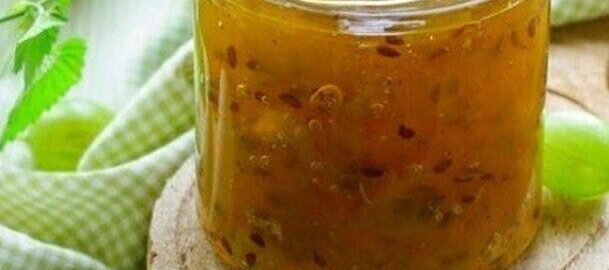 Ингредиенты Крыжовник — 1 кг Сахар — 800 гр Мед — 250 гр Корица — 1-2 палочки Соль — щепотка Варенье из зелёного крыжовника