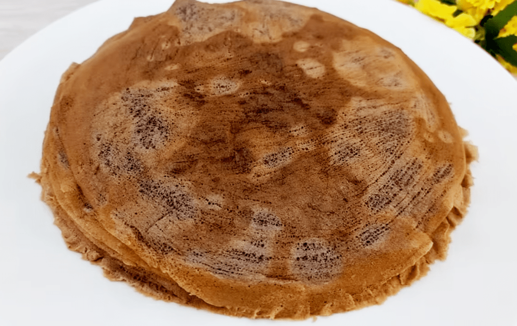 По прошествии времени раскалите сковороду, смазанную маслом. Пеките блинчики привычным способом. Из такого теста получаются эластичные, красивые, будто шоколадные блинчики.