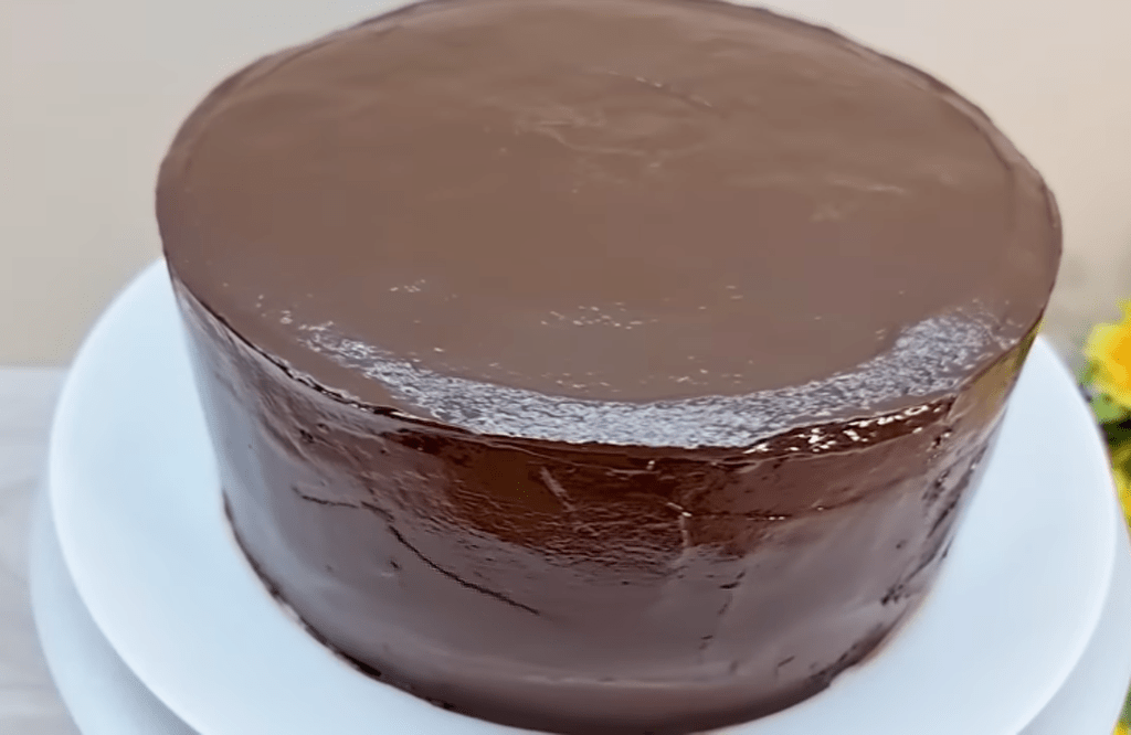 Подготовьте глазурь. Растопите наломанный темный шоколад и сливки импульсами в микроволновой печи, перемешайте. Не перегревайте шоколад, иначе он у вас свернется комком. Приготовленным шоколадным ганашем покройте торт, после чего уберите его в холодильник на 10-15 минут.