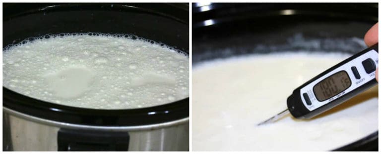 ЕСЛИ ВЫ ИСПОЛЬЗУЕТЕ МУЛЬТИВАРКУ: Налейте молоко в мультиварку, установленную на максимальный режим, закройте крышку. Пройдет 2–3 часа, прежде чем температура молока поднимется до 180 градусов по Фаренгейту.