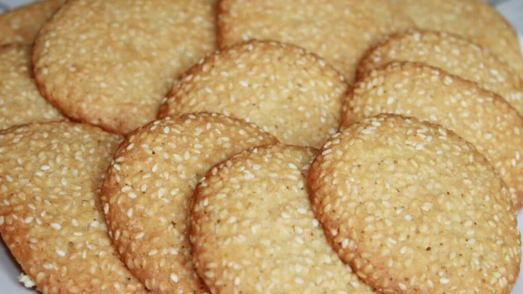 Итак, кунжутные печеньки будут тоненькие, но их будет очень много! У меня получилось около 50 штук.