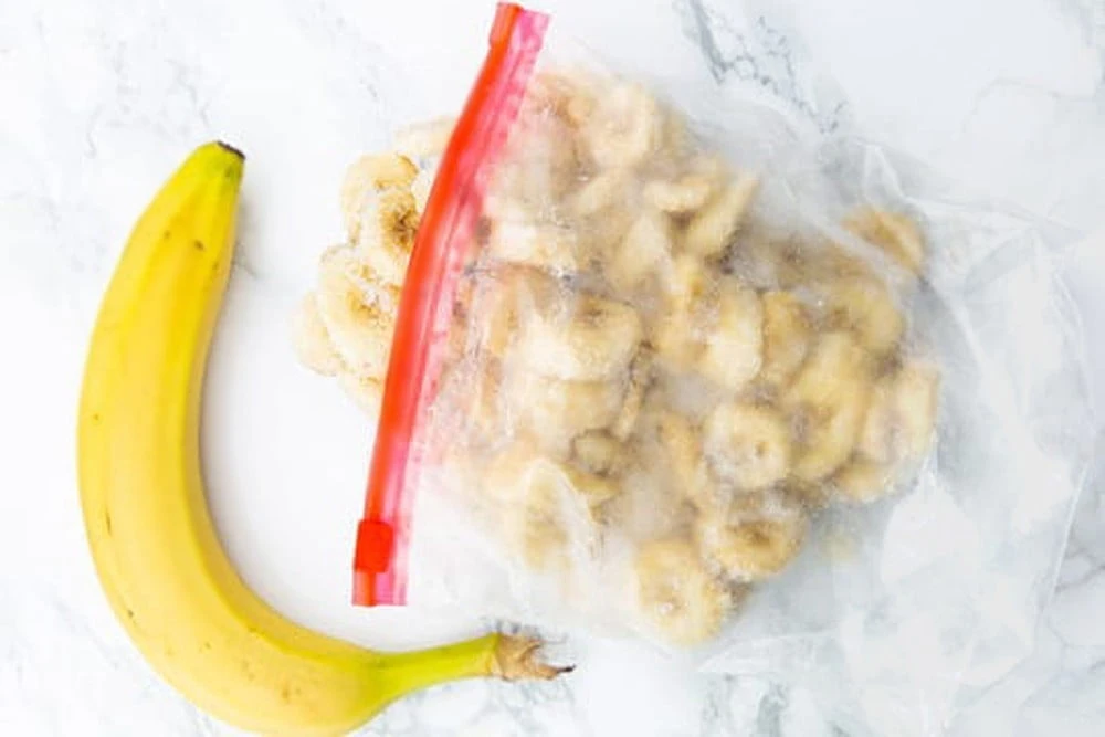 Четыре больших спелых банана почистить и нарезать тонкими колечками. Переложить бананы в пакет с застежкой-молнией и убрать в морозильную камеру на ночь или минимум на 2–3 часа.