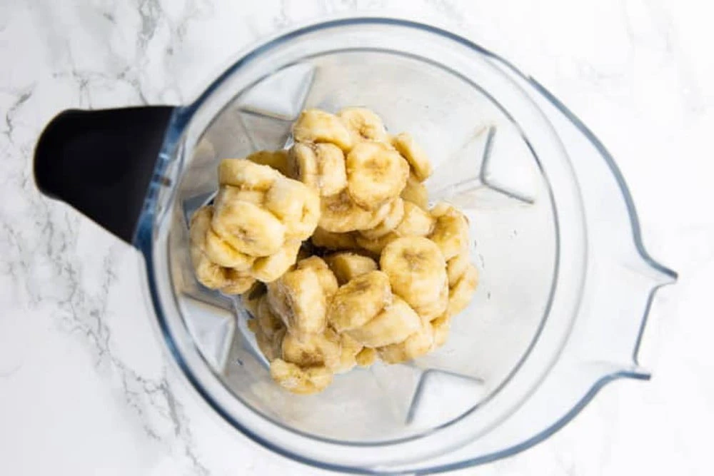 Переложите замороженные бананы в чашу блендера.