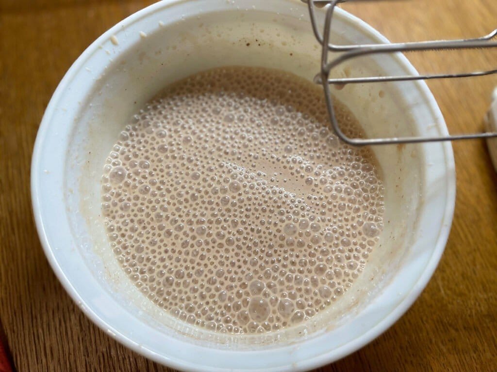 На высокой мощности миксером взбиваем массу. Она должна насытиться кислородом.