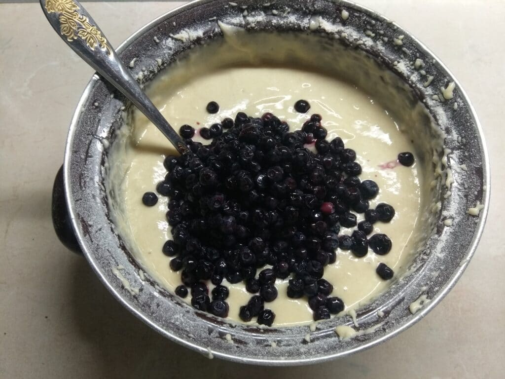 4. Затем добавить промытую или размороженную чернику. Аккуратно перемешать.