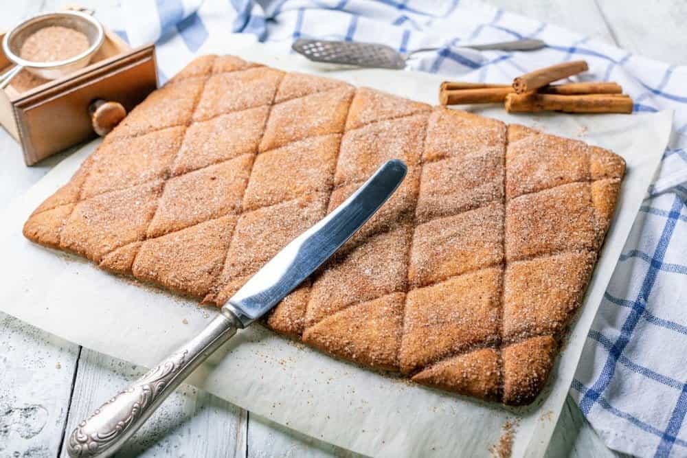 Противень с горячим и готовым печеньем выньте из духовки, и ещё раз пройдитесь ножом по заранее сделанным надрезам.