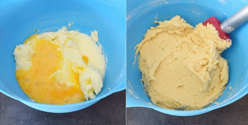 Поместите мягкое сливочное масло в емкость, добавьте сахар и взбивайте около 4-5 минут, пока не получится однородный крем. Добавьте соль, ваниль и яйцо и еще немного взбейте.