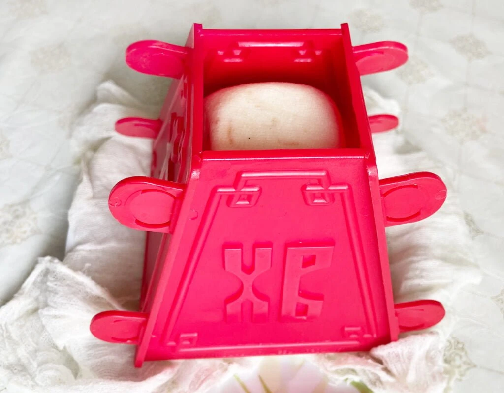 4. На следующий день вынимаем пасху из холодильника, переворачиваем пасочницу на плоскую тарелку, снимаем форму и марлю.