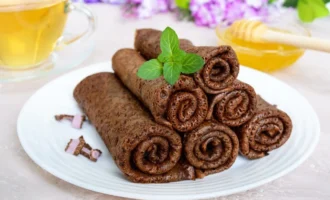 | 3 | С порошком какао смешаем просеянную муку и частями добавляем в миску. Хорошо все смешиваем до однородности. Накрыв полотенцем, оставляем в тепле на 1 час. |