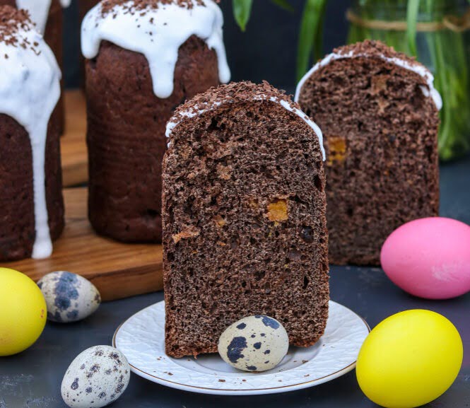 Куличи — пасхальные лакомства с вековыми традициями. Но это не значит, что нужно строго следовать рецептуре. Поэтому давайте приготовим аппетитный шоколадный кулич.
