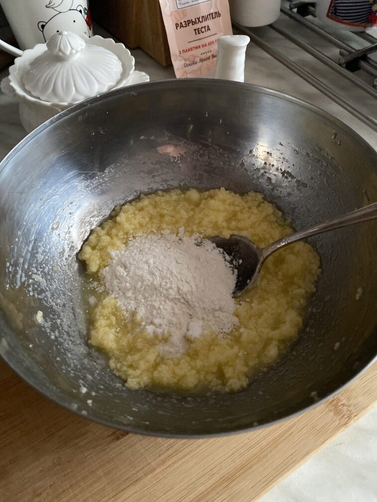 | 2 | ![]() Размягченное сливочное масло перетрем с сахаром добела. |