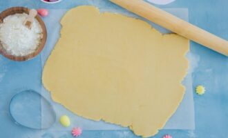 Смешиваем сливочный сыр с сахарной пудрой и небольшим количеством розового красителя. Хорошенько размешиваем, пока он не приобретет однородный цвет. Выкладываем крем в кондитерский мешок с круглой насадкой. Если мы собираемся подавать торт сразу, переходим к его украшению, если подаем позже — лучше отложить это дело (храним в холодильнике до востребования).