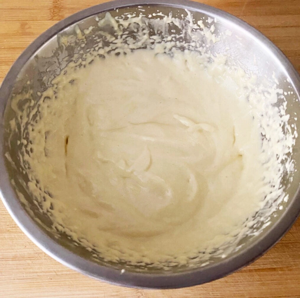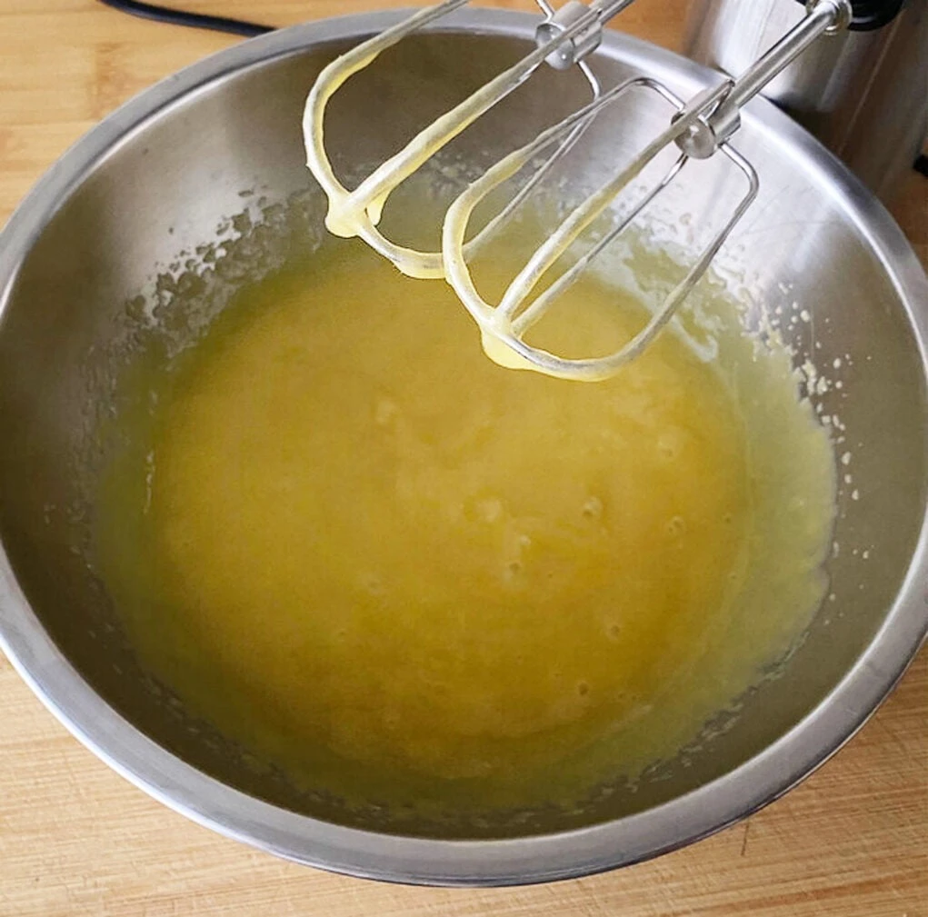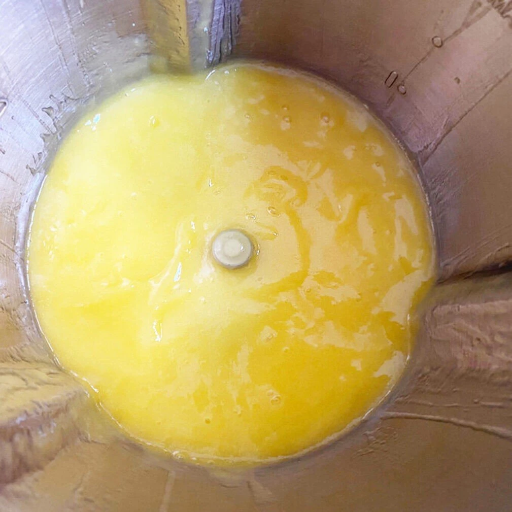 Перекладываем смесь из манго в большую миску (если эта маловата) и взбиваем, пока масса не увеличится в объеме вдвое и не приобретет беловатый цвет.
