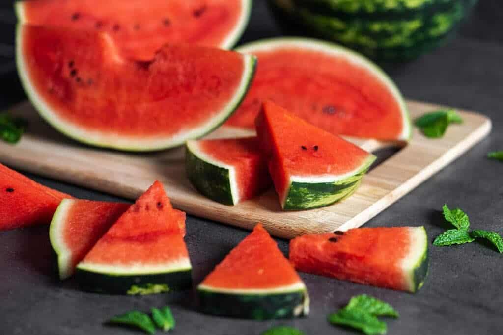 - Нарежьте арбуз на кубики.