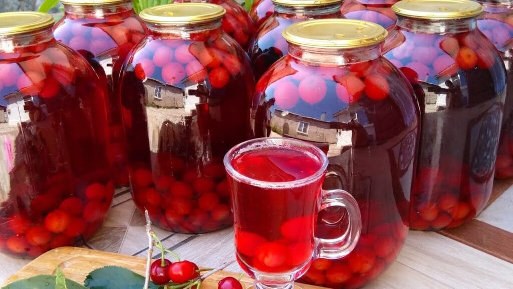 Вишневый компот на зиму — самый простой рецепт. По желанию можно добавить пару листиков мяты.