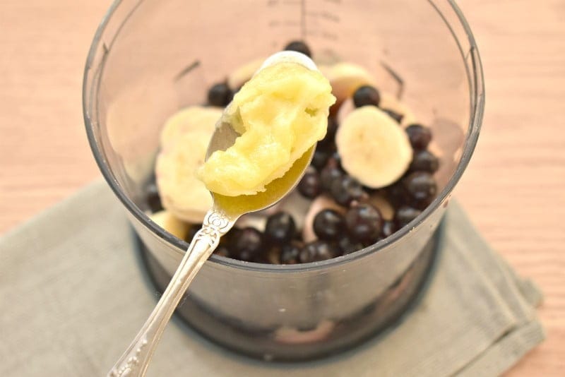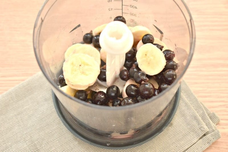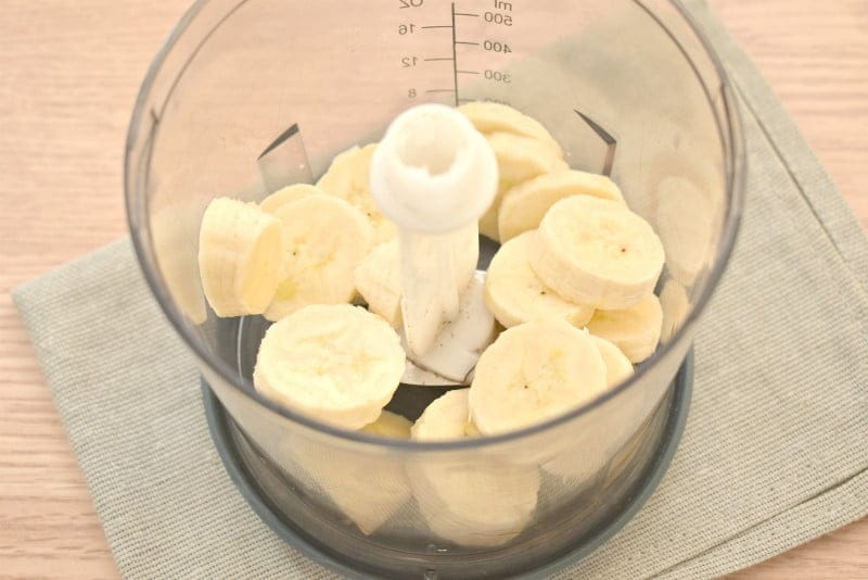 Очищаем банан, нарезаем его ломтиками и перекладываем в чашу блендера.