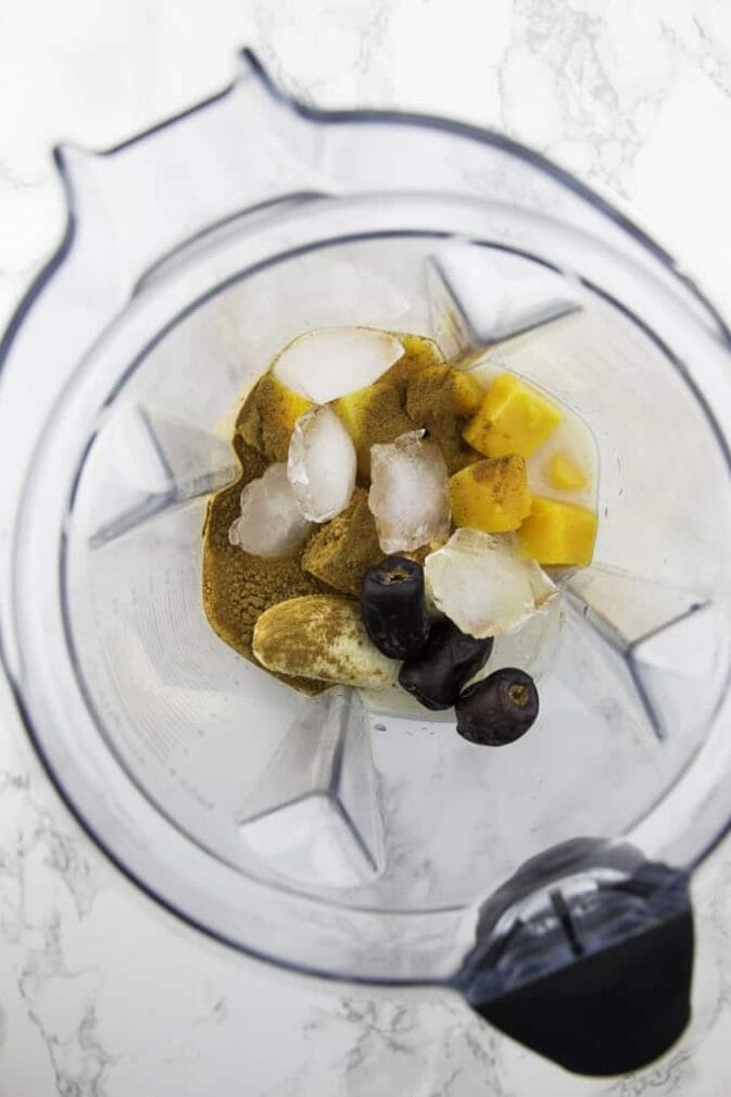 Поместите все ингредиенты в блендер.