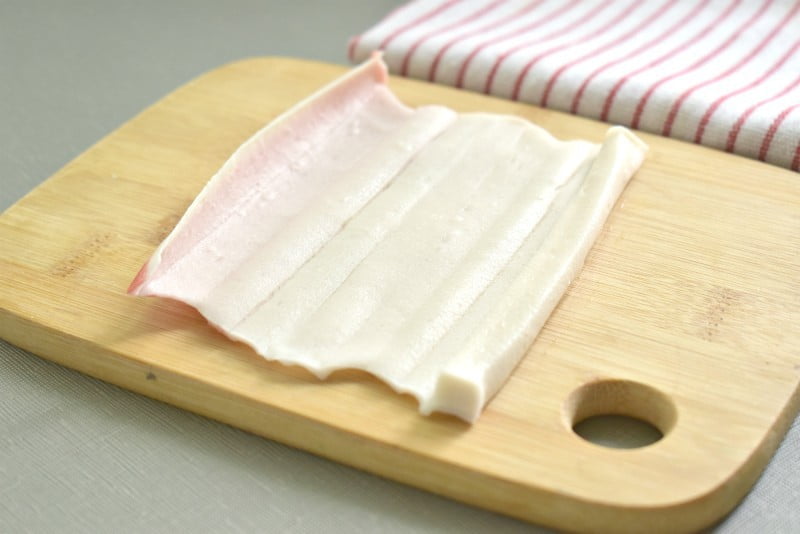 Размороженные крабовые палочки разворачиваем в виде пласта.