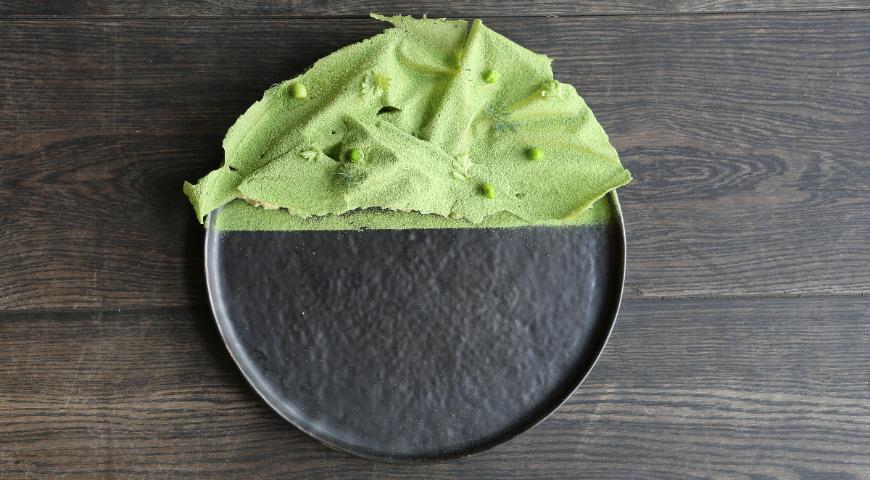 Для чипсов мороженый зеленый горошек припустите в 50 мл кипятка. Вместе с водой измельчите в блендере. Агар-агар взбейте венчиком в 50 мл кипятка и в течение пары минут проварите. Когда масса станет тягучей, введите ее в пюре из зеленого горошка. Для вкуса можно добавить перец, сахар или копченую соль. На противень постелите силикон или бумагу для выпечки. Распределите по нему полученную смесь. Поставьте сушиться при 60–80 °С на 2–3 ч (при более высокой температуре масса потеряет цвет). Получатся хрустящие чипсы, которыми можно закрыть оливье.