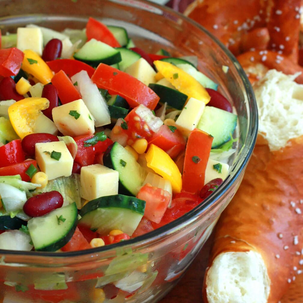Свежий, полезный, ароматный и красочный летний салат, который станет идеальным дополнением к ужину или пикнику