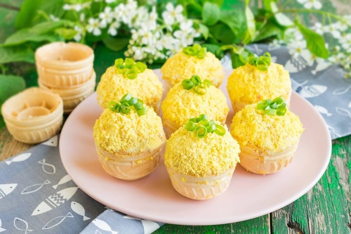 Вкусный нежный салат из рыбы с легкой заправкой в тарталетках