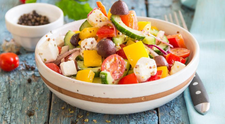 Сами греки называют свой салат хориатики и готовят исключительно с греческой фетой — она более маслянистая, не такая соленая, как брынза, и довольно плотная по консистенции. Но в интернациональной кухне греческий салат готовится и с фетой, и с брынзой, и с фетаки. Для него главное — спелые помидоры, без них не тот вкус.