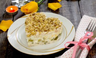 Этот салат хорош в охлаждённом виде. Подавайте в стеклянной салатнице или порционно.