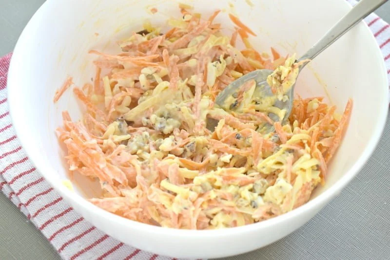 - Вкусный салат из моркови, сыра и орехов подаём к столу. Приятного всем аппетита!