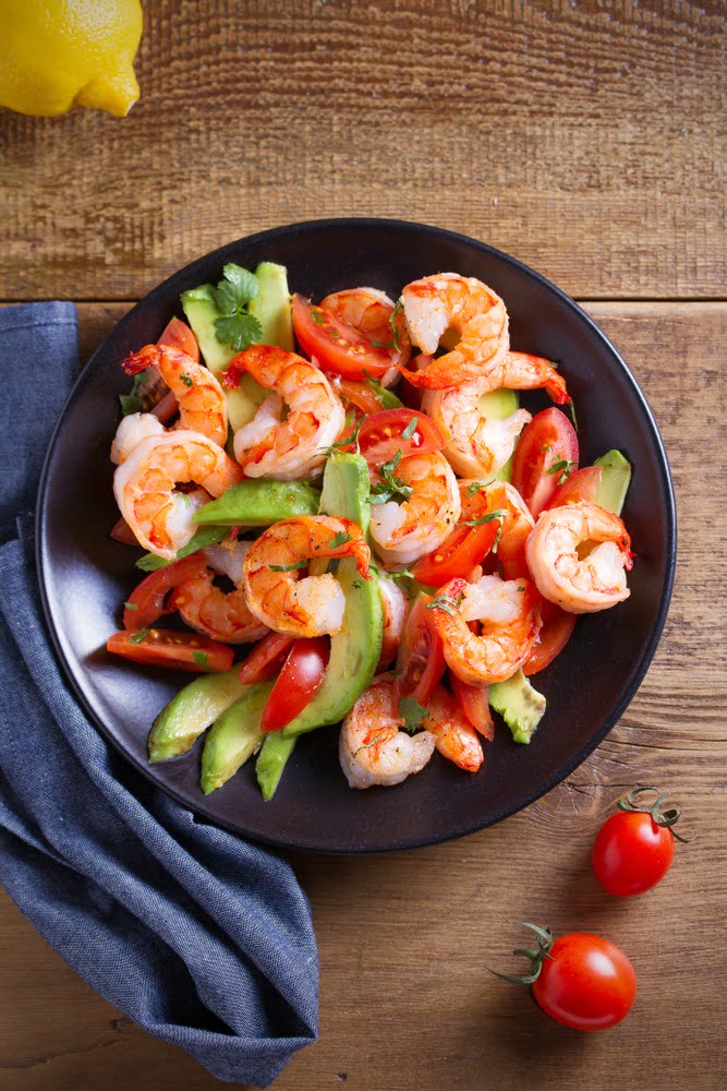 | 4 | В глубокой тарелке соединить помидоры, креветки, авокадо. Полить оливковым маслом. Посолить, поперчить. Посыпать петрушкой. Сбрызнуть соком лимона. Приятного аппетита! |
