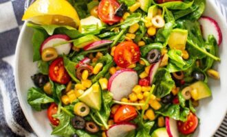 3. В миске смешайте уксус, масло, мелко натертую цедру и специи по вкусу.