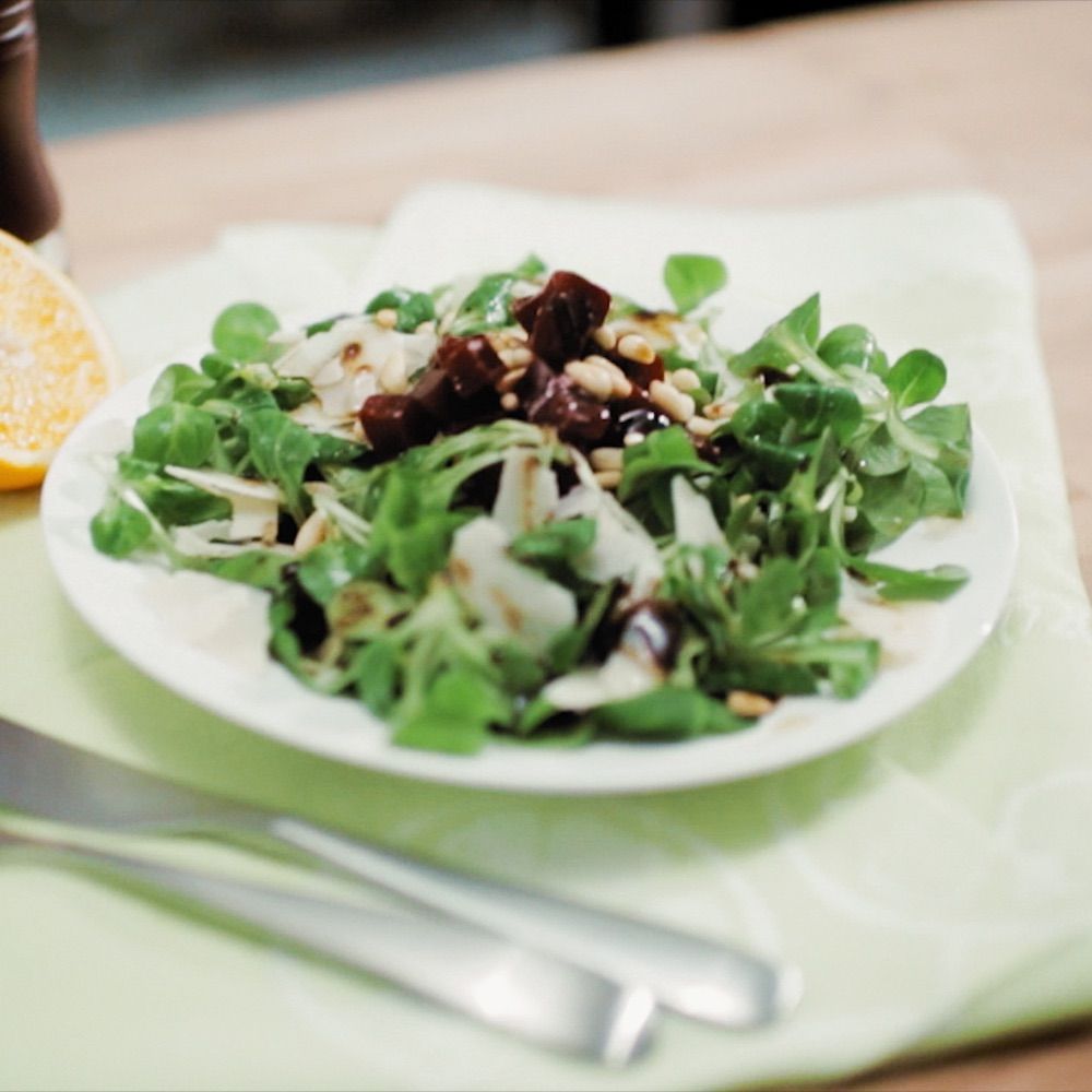 Салат из свёклы, с орешками, пармезаном и заправкой из бальзамического уксуса