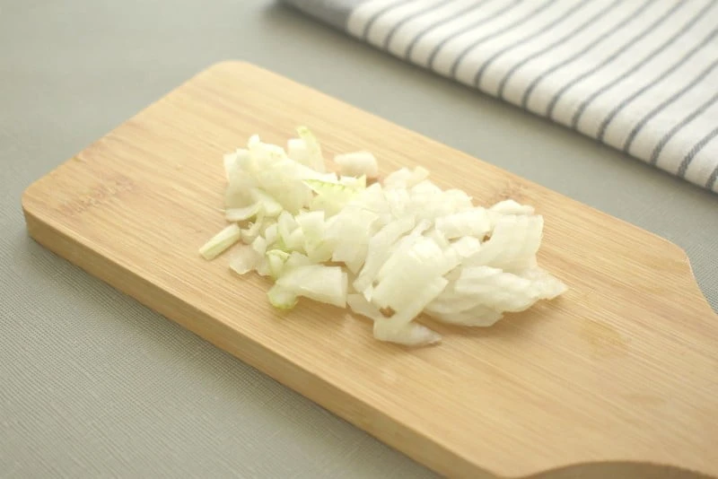 - Небольшое количество репчатого лука мелко нарезаем кубиками. Добавляем к остальным ингредиентам.