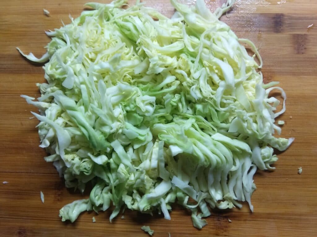 - Капусту помыть, мелко нашинковать.