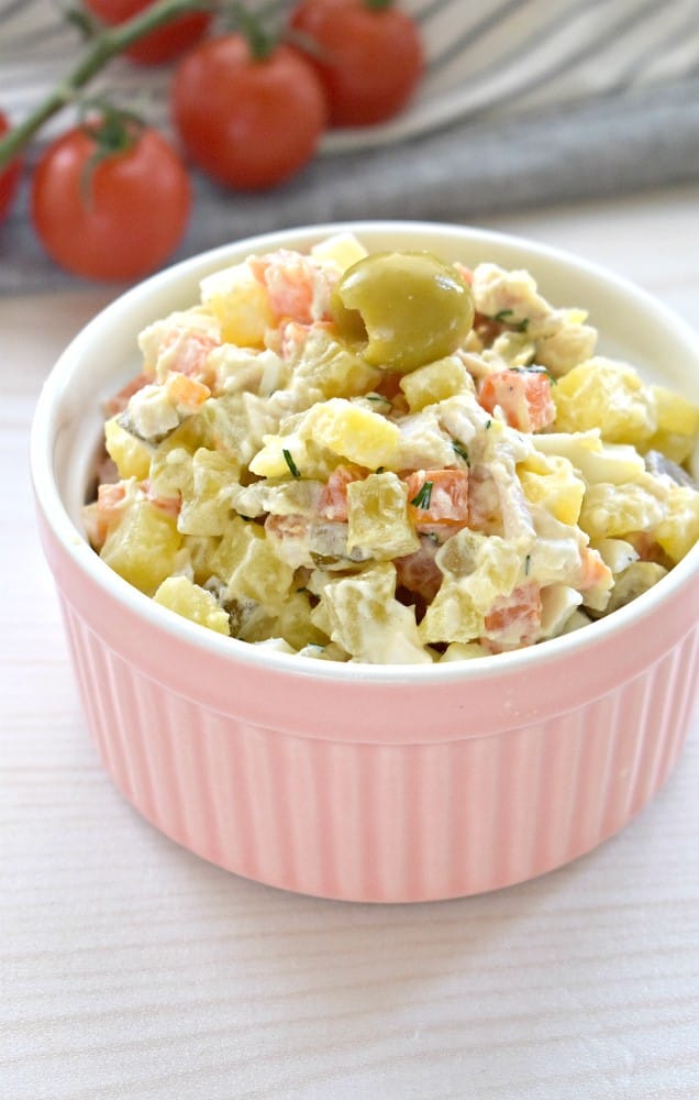 Этот салат не только богат разнообразными ингредиентами, но и очень прост в приготовлении. Он является отличным выбором для семейного обеда или ужина, а также прекрасно подойдет для праздничного стола. Оливки, придающие салату изысканный вкус и аромат, добавляются вместе с другими овощами — отварной картошкой и морковью. Тонко нарезанный маринованный огурец и отварные яйца дополняют композицию, придают салату дополнительный вкусовой контраст и хрустящую текстуру.