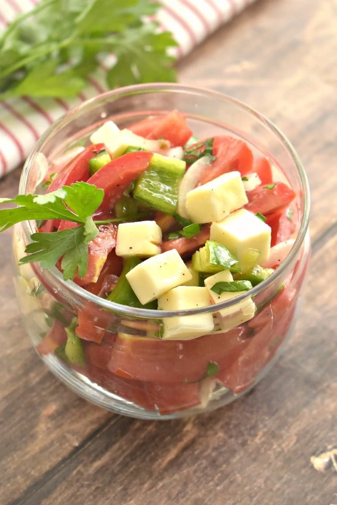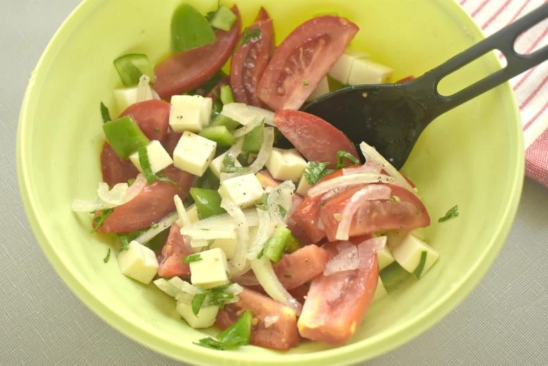 Салат с помидорами, перцем и плавленым сыром – это простое и вкусное блюдо, которое идеально подходит для летних вечеринок или обедов на свежем воздухе.