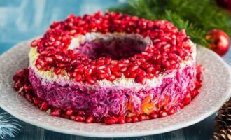 - Свеклу помыть, отварить до готовности. Остудить, очистить. Свеклу нарезать кубиками.