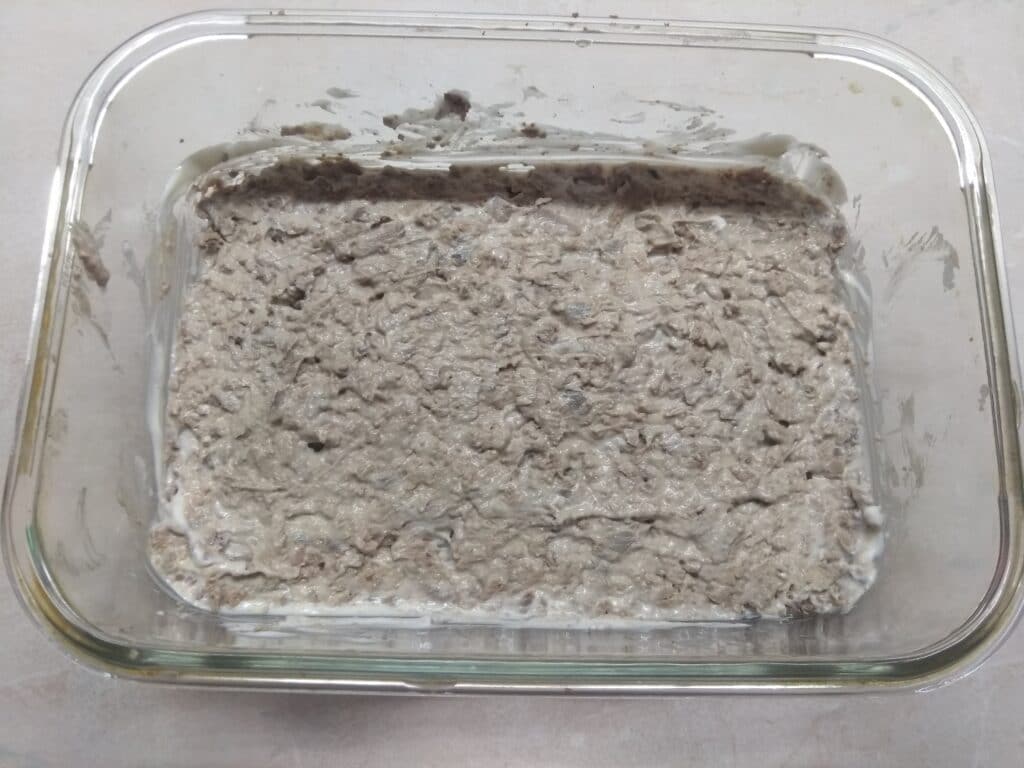 | 3 | 3. Сметану посолить и смазать слой печени. |