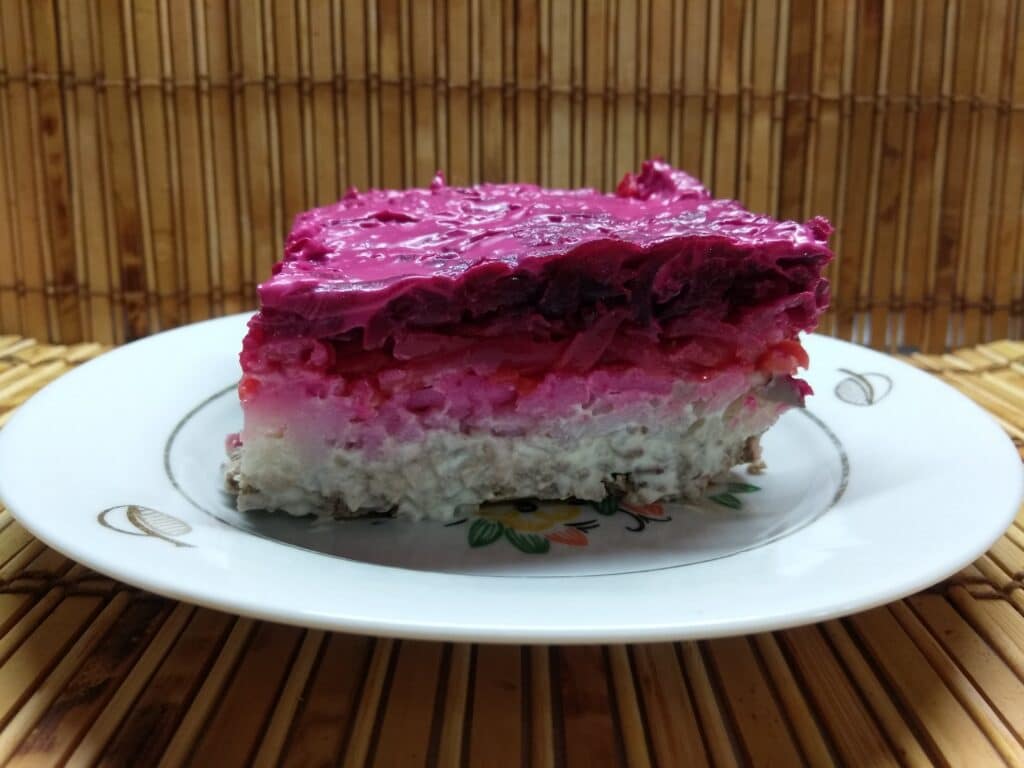 | 6 | 6. Последний слой – слой натертой свеклы. Смазать сметаной. |
