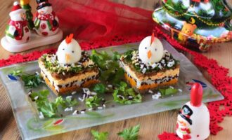 Очень простой слоенный салат из доступных ингредиентов. Он очень похож на многими любимый салат “Шуба”, но вместо селедки мы будем использовать печень, а вместо жирного майонеза – сметану с самым малым процентом жирности. Получится менее калорийно и более полезно. А благодаря слоям салат будет смотреть нарядно и празднично
