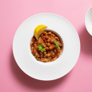 2. Подавайте киноа, перемешав с нутом, присыпав петрушкой, и долькой лимона.