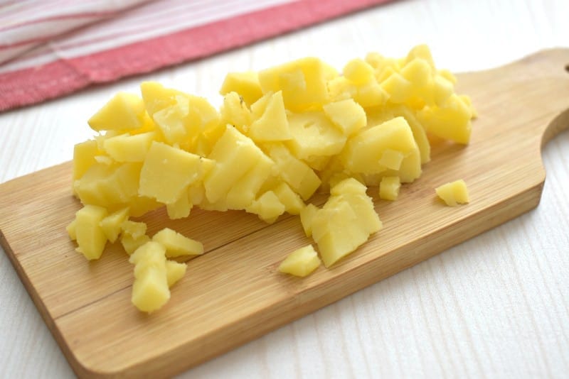 Заранее для винегрета нужно отварить картошку, морковь и свёклу. Время варки корнеплодов займёт от 20 до 50 минут. После варки данные ингредиенты остудить и очистить. Приступаем к нарезке продуктов. Картофель нарезаем кубиками.