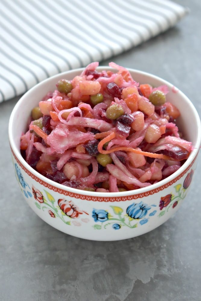 Сочный и яркий винегрет станет отличным выбором как для обеденного стола, так и для пикника на природе. А благодаря простоте и скорости приготовления (если отварить корнеплоды заранее), его можно приготовить даже в самый загруженный день. Берите в руки кухонный нож и присоединяйтесь к нам для приготовления этого вкусного и питательного салата.