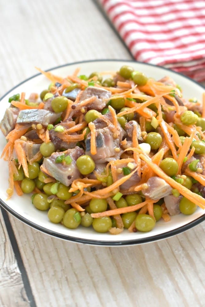 Вкусная, сочная, пикантная закуска из сельди с морковкой и горошком станет настоящим украшением вашего праздничного застолья.