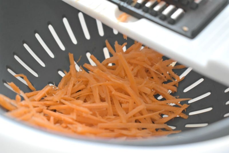 Очищаем морковку. Измельчаем морковку на терке для овощей по-корейски.