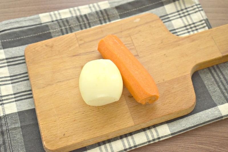 Очищаем лук и морковь. |